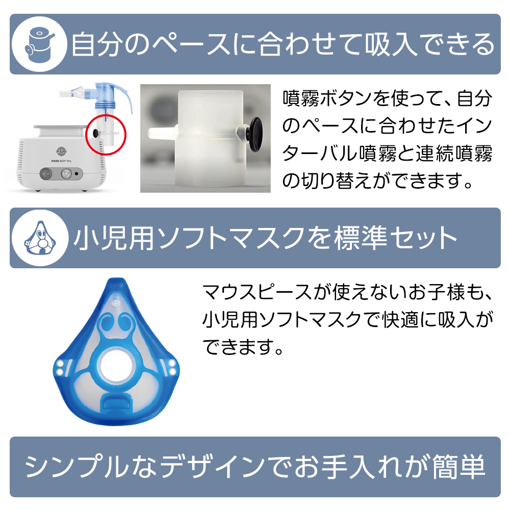 マウスが使えないお子様も、小児用ソフトマスクで快適に吸入ができます。