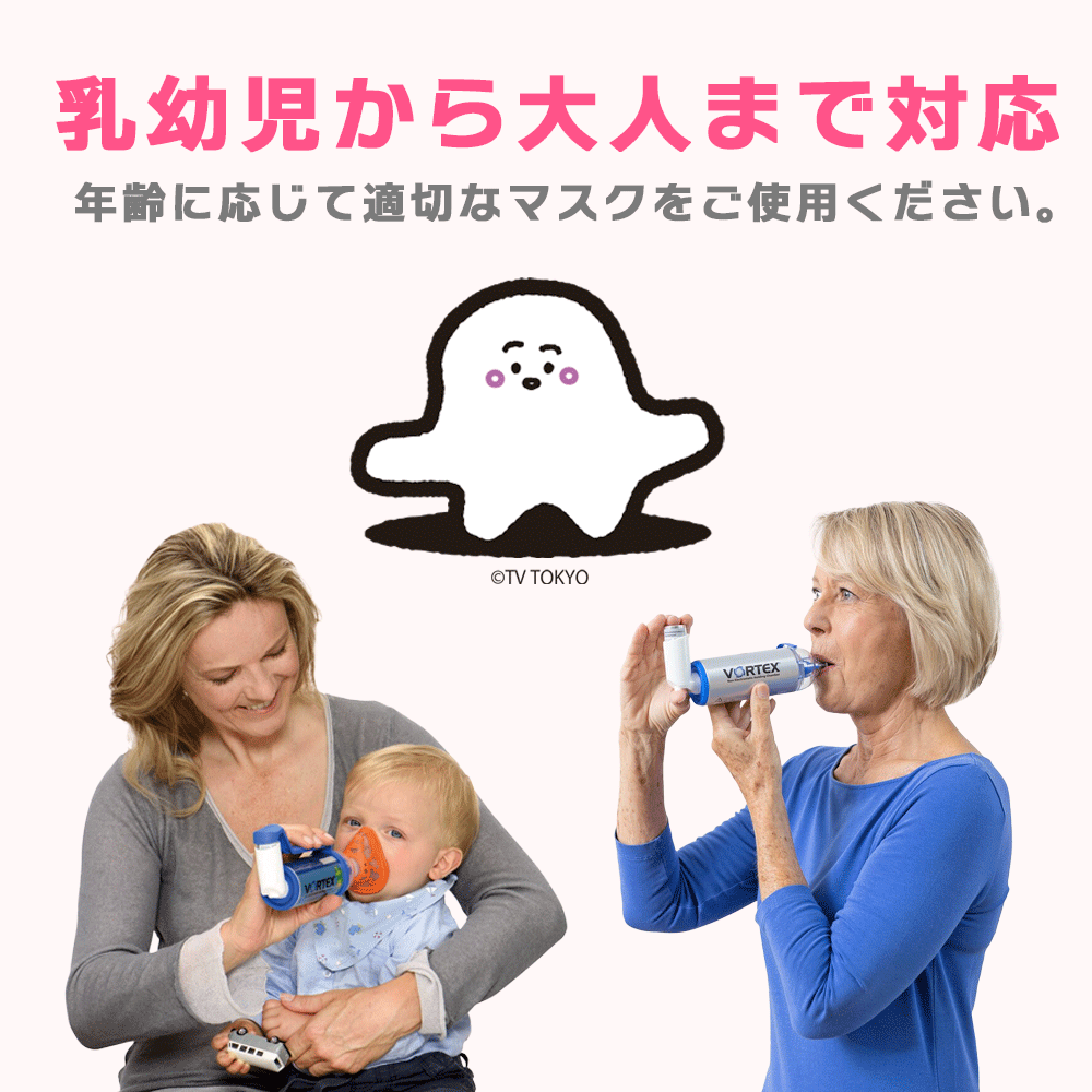 吸気流量の少ない乳幼児や高齢者の方でも効率よく吸入できます。