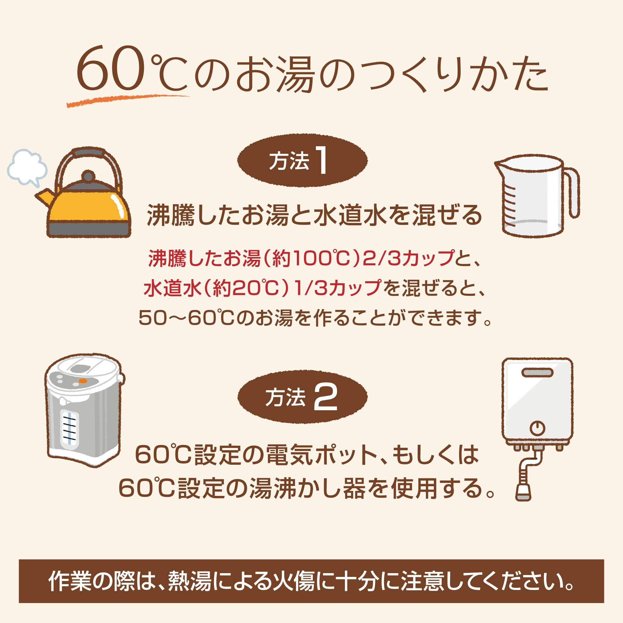 ※温水を入れて使用する場合は、必ず60度以下のお湯を入れ、お湯濡れしないか確認の上ご使用ください。