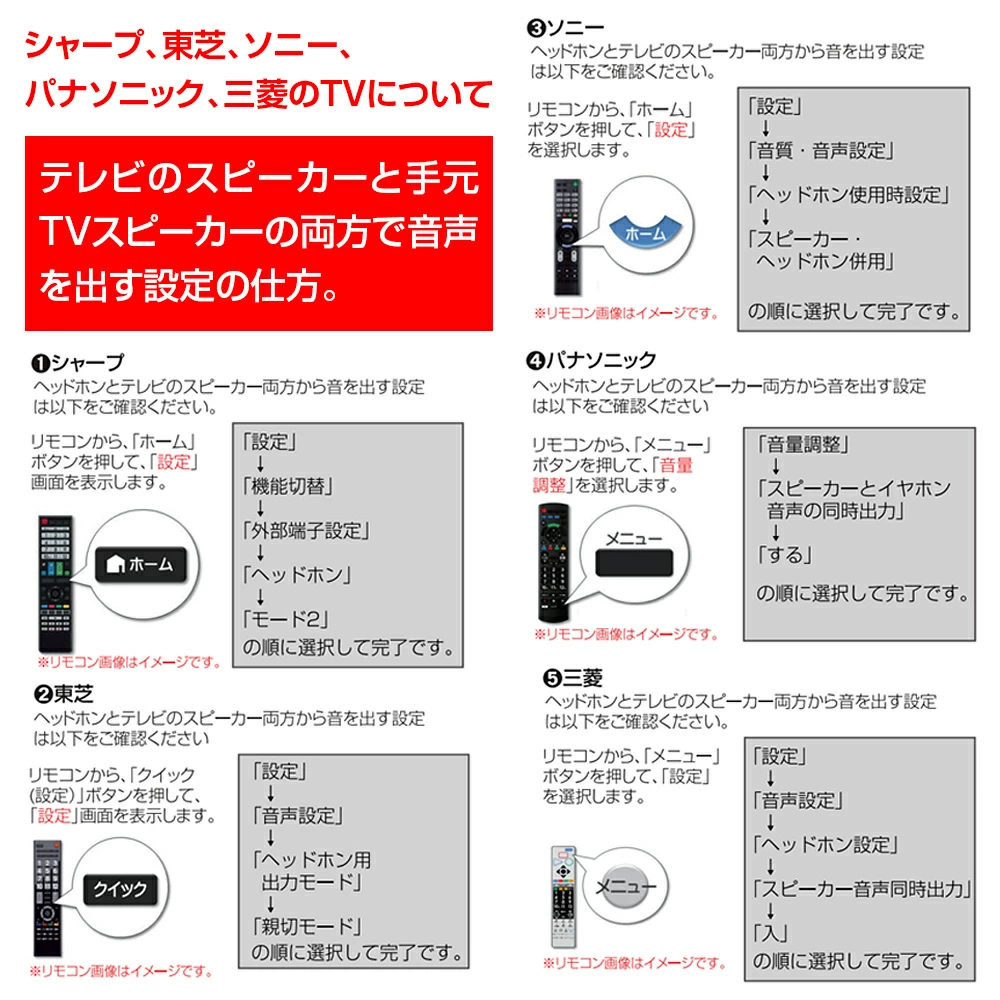 ※シャープ、東芝、ソニー、パナソニック、三菱のテレビは、テレビのスピーカーと手元スピーカーの両方で音声を出すことができます。