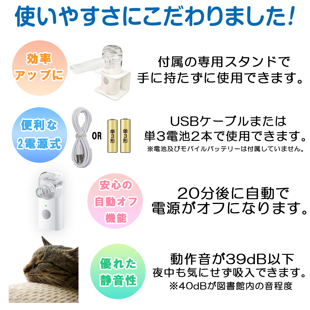 ・使用可能液:【医師が処方する薬液】メプチン、イノリン、アスプール、クロモグリク酸Na、生理食塩水など