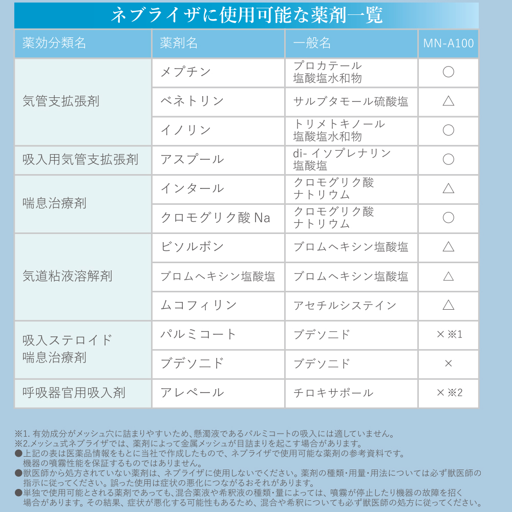 | 販売名 | 動物用メッシュ式ネブライザ MN-A100 |