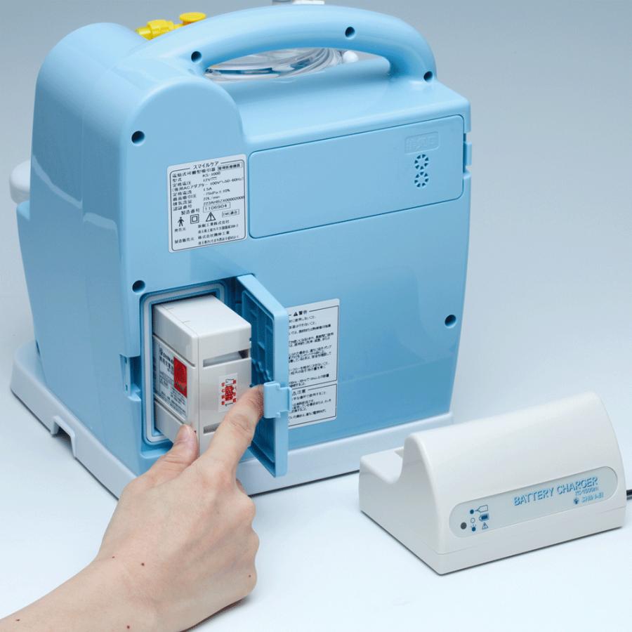 オプション購入で、3電源対応(専用ACアダプター、専用充電池、シガーライターコード)となります。またパワースマイル、スマイルキュートの充電器、充電池がそのまま使えます。